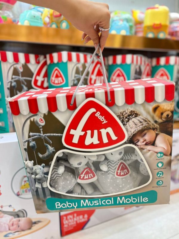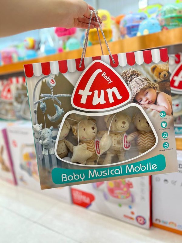 آویز تخت نوزاد موزیکال کوکی طرح خرس کرم بیبی فان Baby Fun