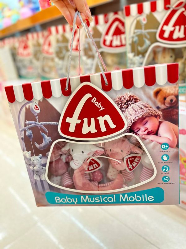 آویز تخت نوزاد موزیکال کوکی طرح فیل صورتی بیبی فان Baby Fun