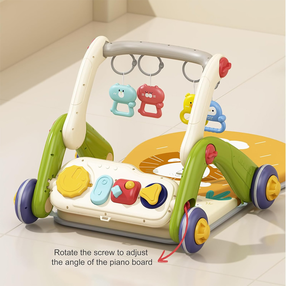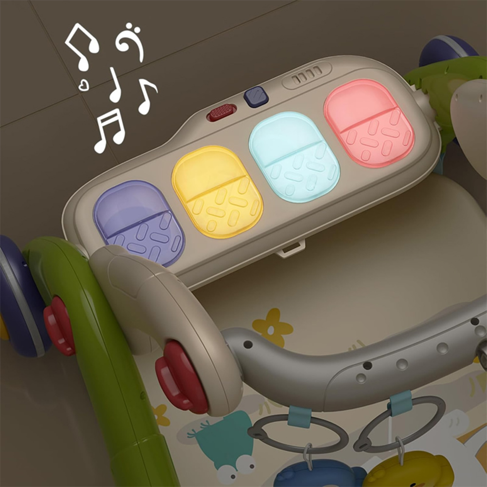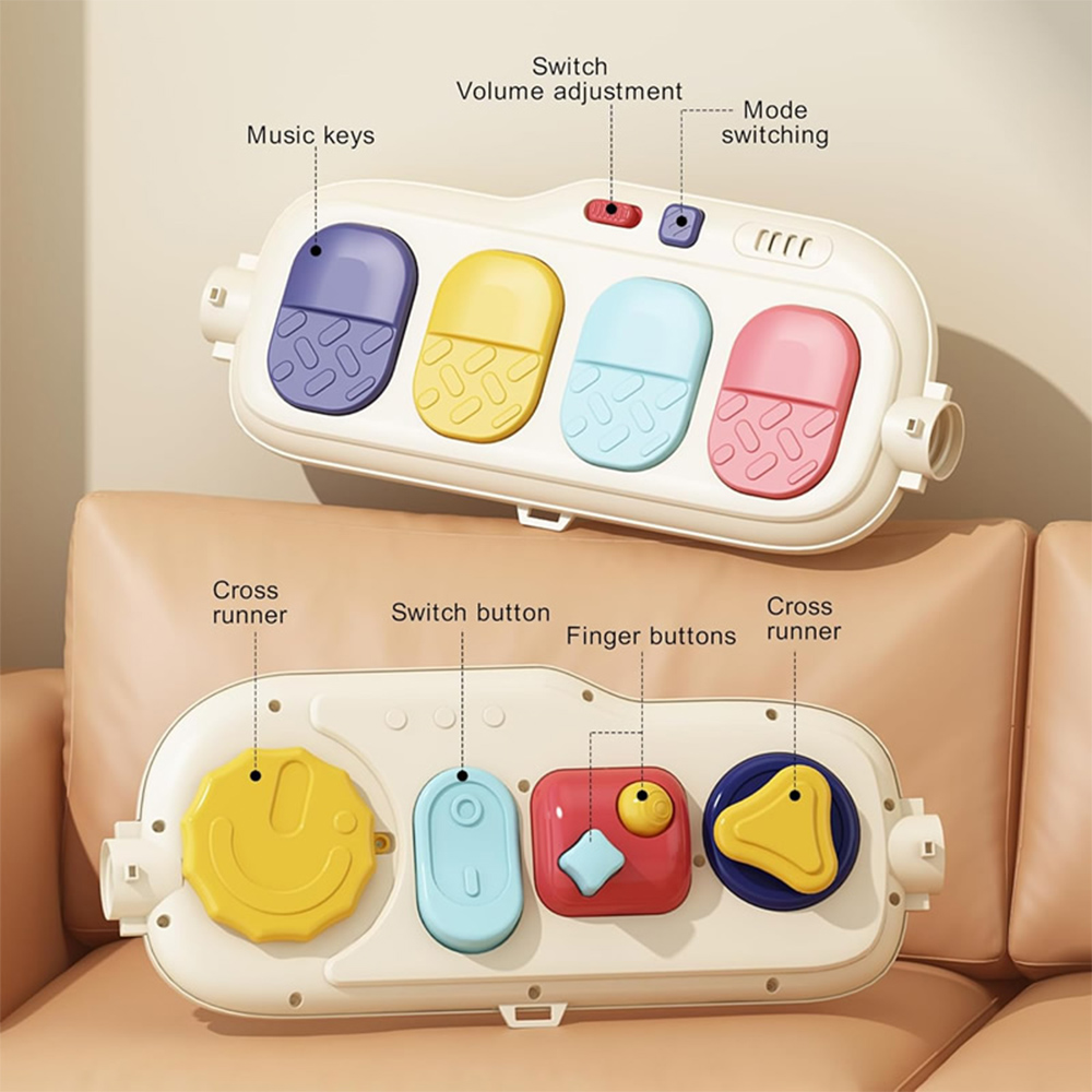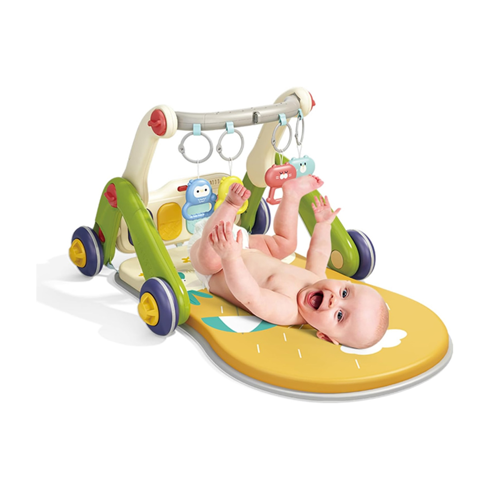 - در حالت تشک بازی، کودک علاوه بر بازی با آویز عروسکی بالای سرش با صفحه کلید پیانویی پایین پای خود نیز سرگرم می شود