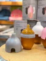 . شیشه شیر ها کاملا سیلیکونی و انعطاف پذیر نیز میباشند. تمامی سیلیکون ها ساخته شده از شیره درخت کاج میباشد. تمامی شیشه شیر ها انتی کولیک میباشد. سری شیشه شیر ها شبه سازیشده از سینه مادرمیباشد که باعث میشود کودک شماراحتر از ان استفاده کند.