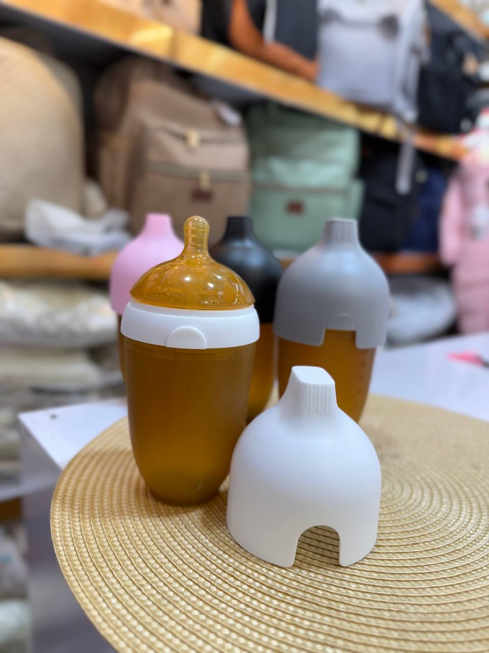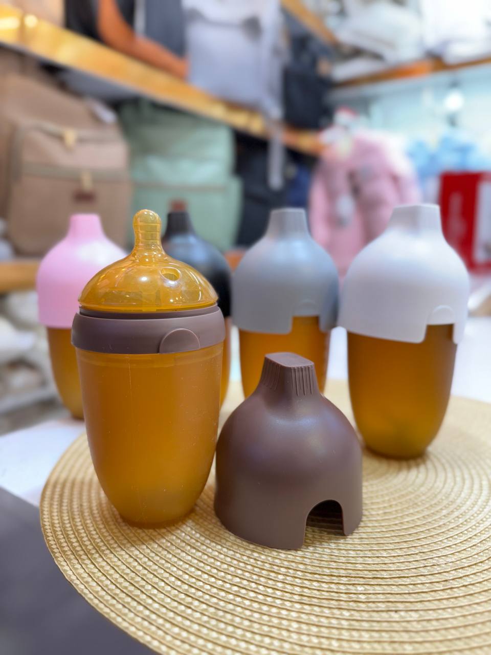 . شیشه شیر ها کاملا سیلیکونی و انعطاف پذیر نیز میباشند. تمامی سیلیکون ها ساخته شده از شیره درخت کاج میباشد. تمامی شیشه شیر ها انتی کولیک میباشد. سری شیشه شیر ها شبه سازیشده از سینه مادرمیباشد که باعث میشود کودک شماراحتر از ان استفاده کند.