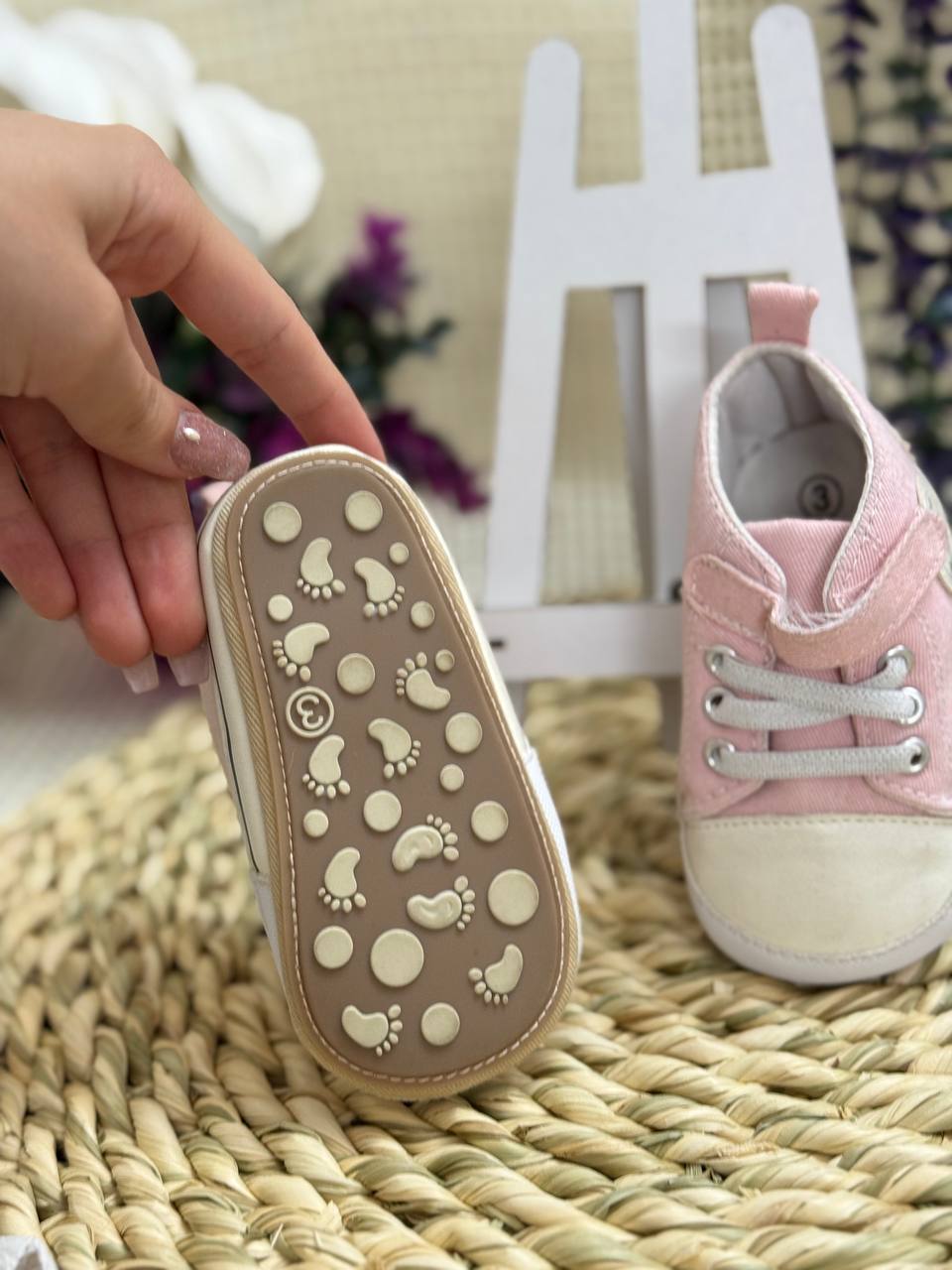 راهنمای سایز: سایز ۱ ( مناسب ۰ تا ۶ ماه ) ۱۱ سانتی متر * سایز ۲ ( مناسب ۶ تا ۱۲ ماه ) ۱۲ سانتی متر * سایز ۳ ( مناسب ۱۲ تا ۱۸ ماه ) ۱۳ سانتی متر