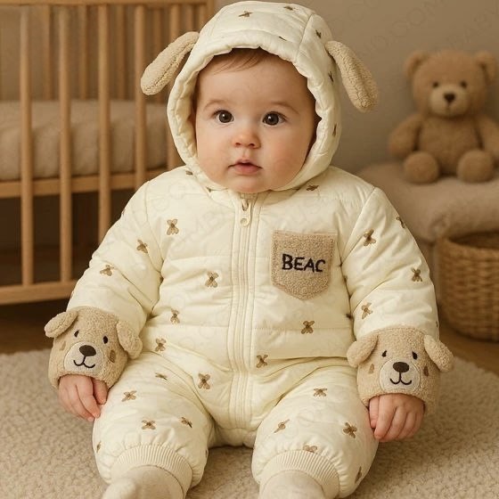 خانه لباس نوزادی پسرانه کاپشن سرهمی تدی گلدوزی